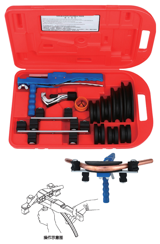 ●404-AL及505-ML系列的弯管器,能将你需要的管类弯至135° 。 ●内附有7种规格,英制从 1/4"~7/8";公制从 8mm~22mm ,附有CM-274 切管刀,及CM-208 绞刀。 ●将所有的配件装入手提盒内,外出工作者携带方便,或管类已固定时及空间狭小也很容易操作。 ●遇到硬管时,需要回火,管件壁厚不能薄于 0.6M/M 以下,才能弯出所需要完美的角度。 ●比传统式多了一个手把,能稳固抓住,使操作时更顺手。 ●材料采用尼隆高纤维合成射出产品,耐用不破损不变形。